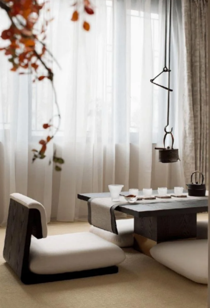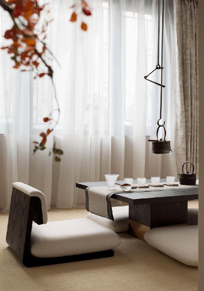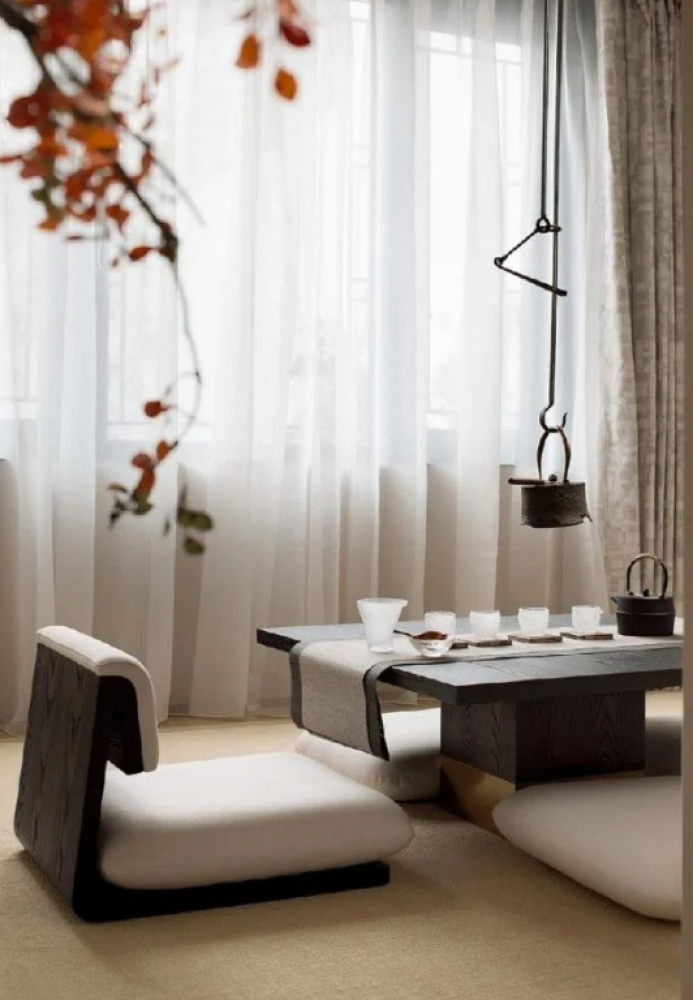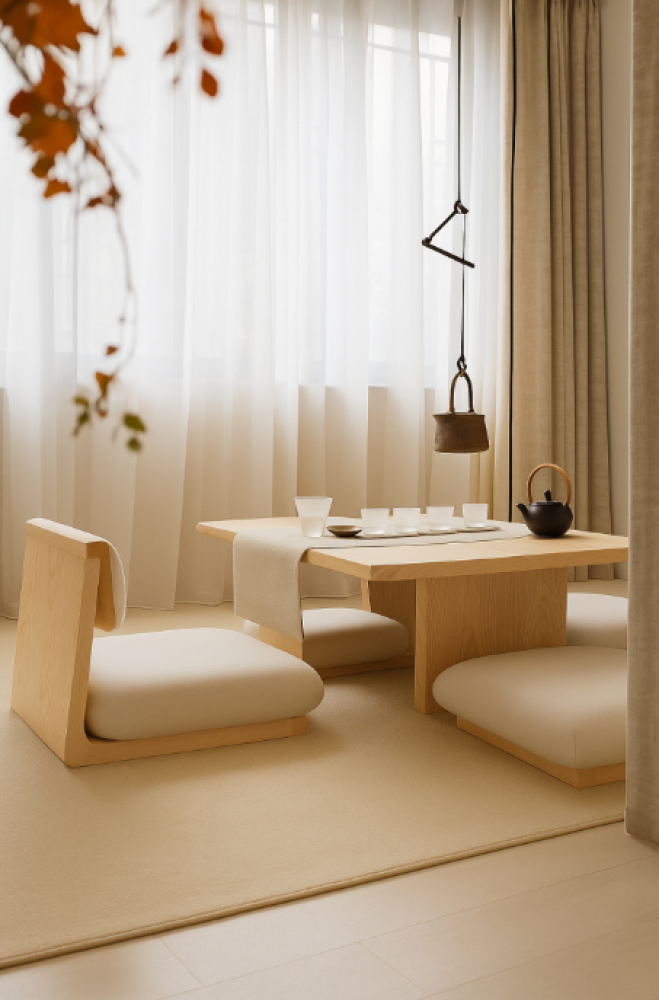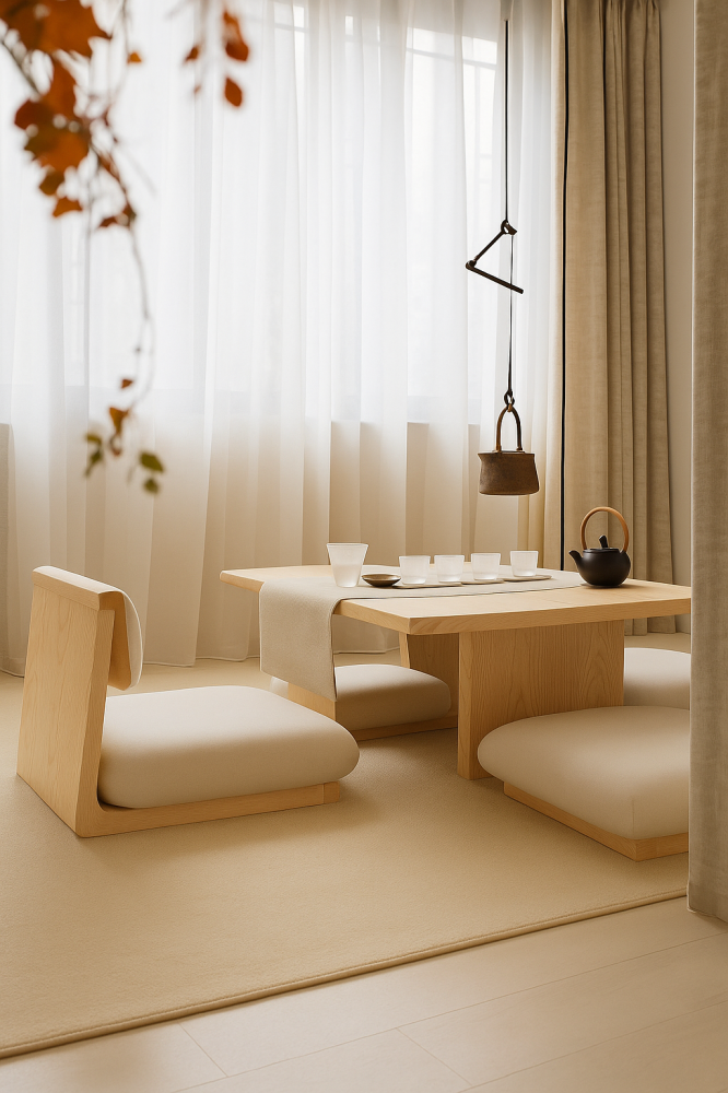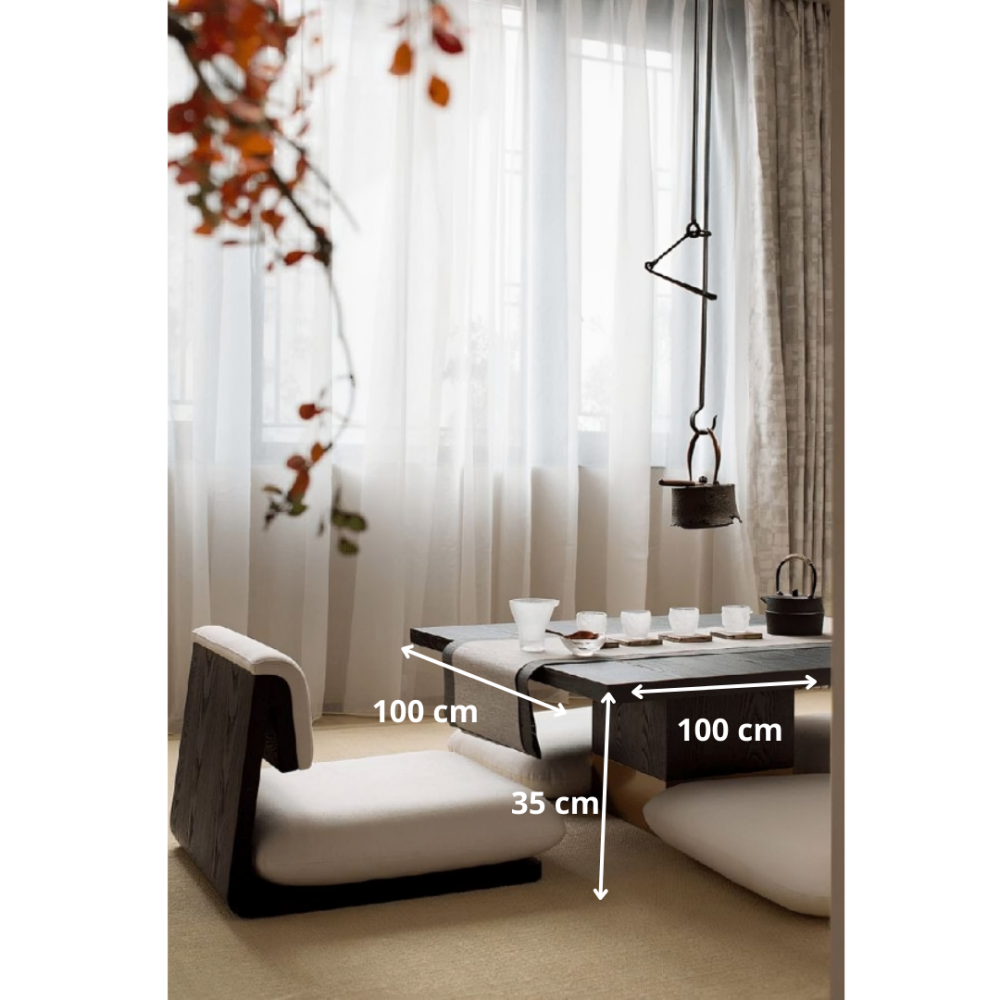 طاولة للطعام والشاي تتميز بقاعدتها الداخلية والمميزة وبجلسة ارضية